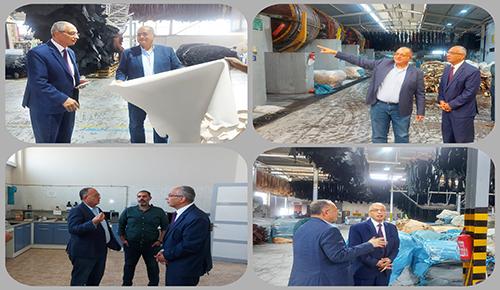 Eng. Essam Al-Naggar, Chairman of the General Organization for Export and Import Control, visited the leather City in Rubiki and met with Eng. Mahmoud Sarj, a member of the city's Board of Directors, to tour one of the eco-friendly tanneries and visit labs attached to Al-Rubiki City.