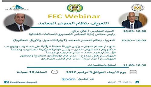 It takes place today 9 November 2022 (Wednesday) at 10.00 a.m. to 11. 00 am e-seminar through the Zoom on "Introduction to the Certified Exporter System", organized by the Export Council for Food Industries in cooperation with the General Organization for Export and Import Control.