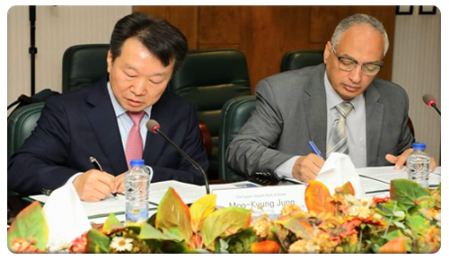 The delegation of the Korean delegation held the inaugural seminar and signed the memorandum of understanding for the project at Goeiic main headquarters at the airport, where Mr. Eng. Essam Al-Naggar, Chairman of Goeiic signed the memorandum of understanding for the project on behalf of Goeiic and Mr. Moo-Kyung Jung, Senior Advisor to the Korean Export-Import Bank representative of the Korean project