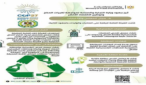 ابرز جهود وزارة التجارة والصناعة لمواجهة تغيرات المناخ وتوطين الاقتصاد الاخضر COP 27/2022